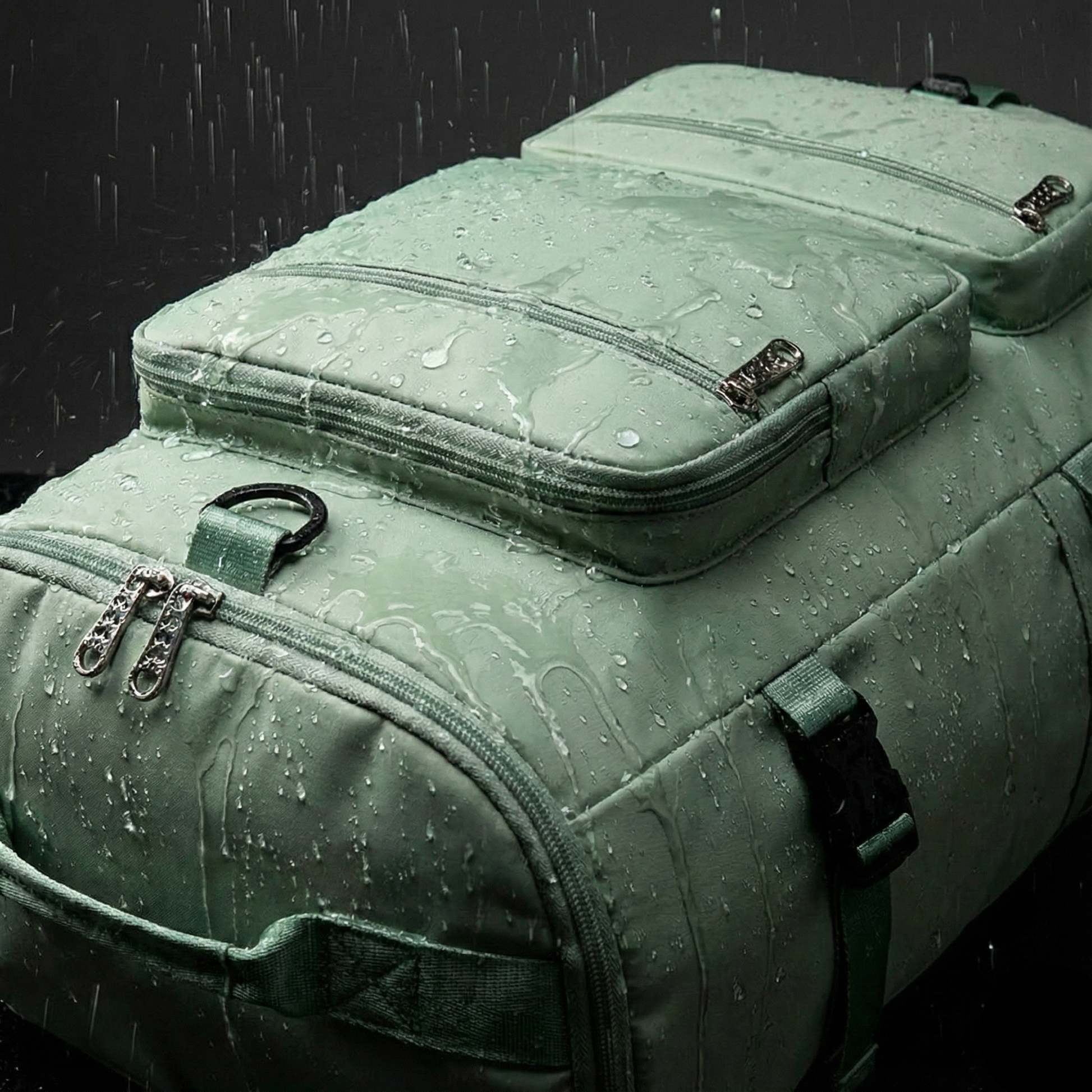 Tissu technique déperlant testé pour résister à une forte pluie. L’eau perle à la surface, sans jamais atteindre l’intérieur. C’est discret, mais redoutablement efficace.