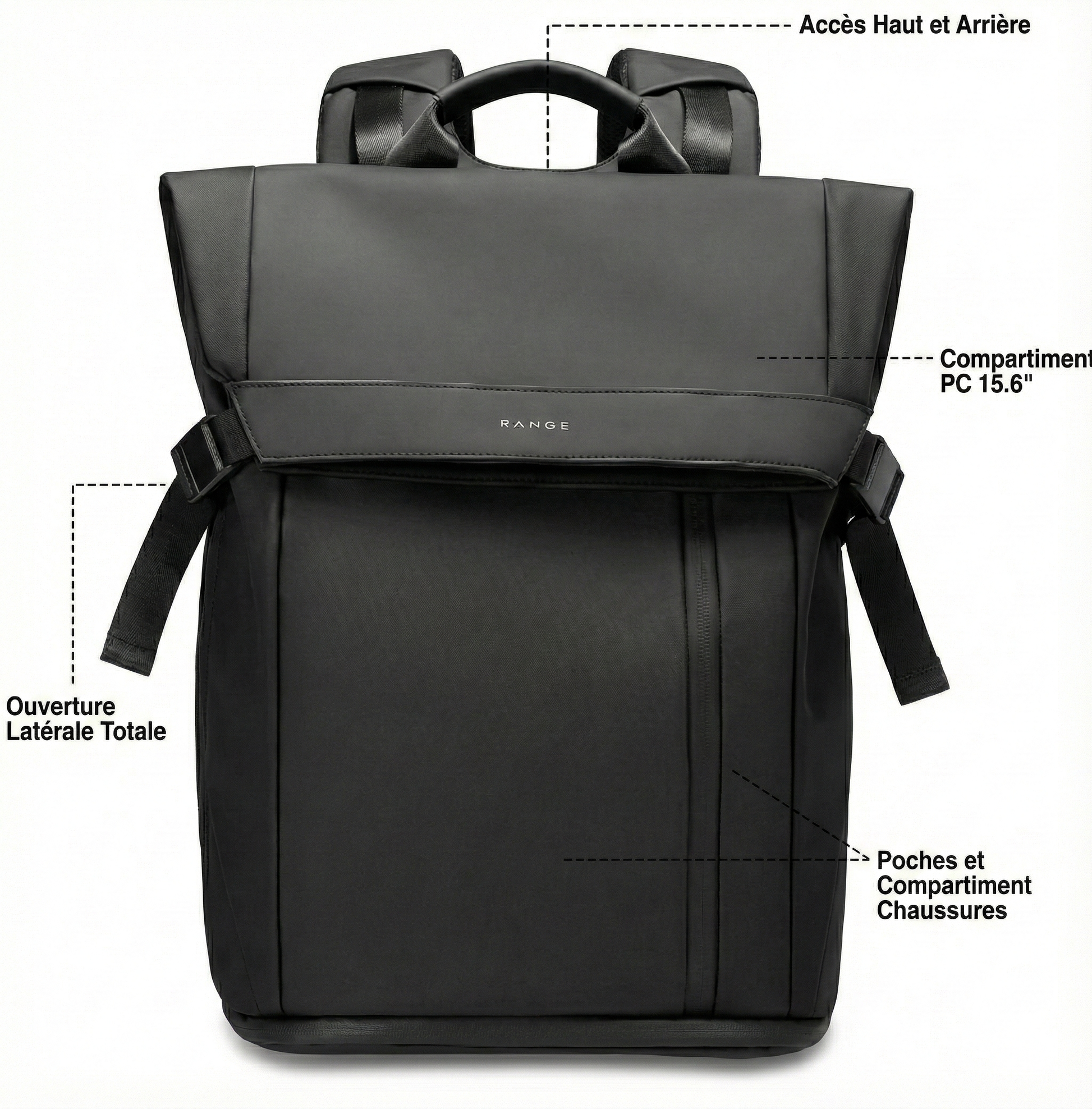 Accès Dual Intelligent : Unique en son genre, ce sac permet d'accéder au compartiment principal par le haut ou par l'arrière via des fermetures éclair dédiées pour une praticité absolue.