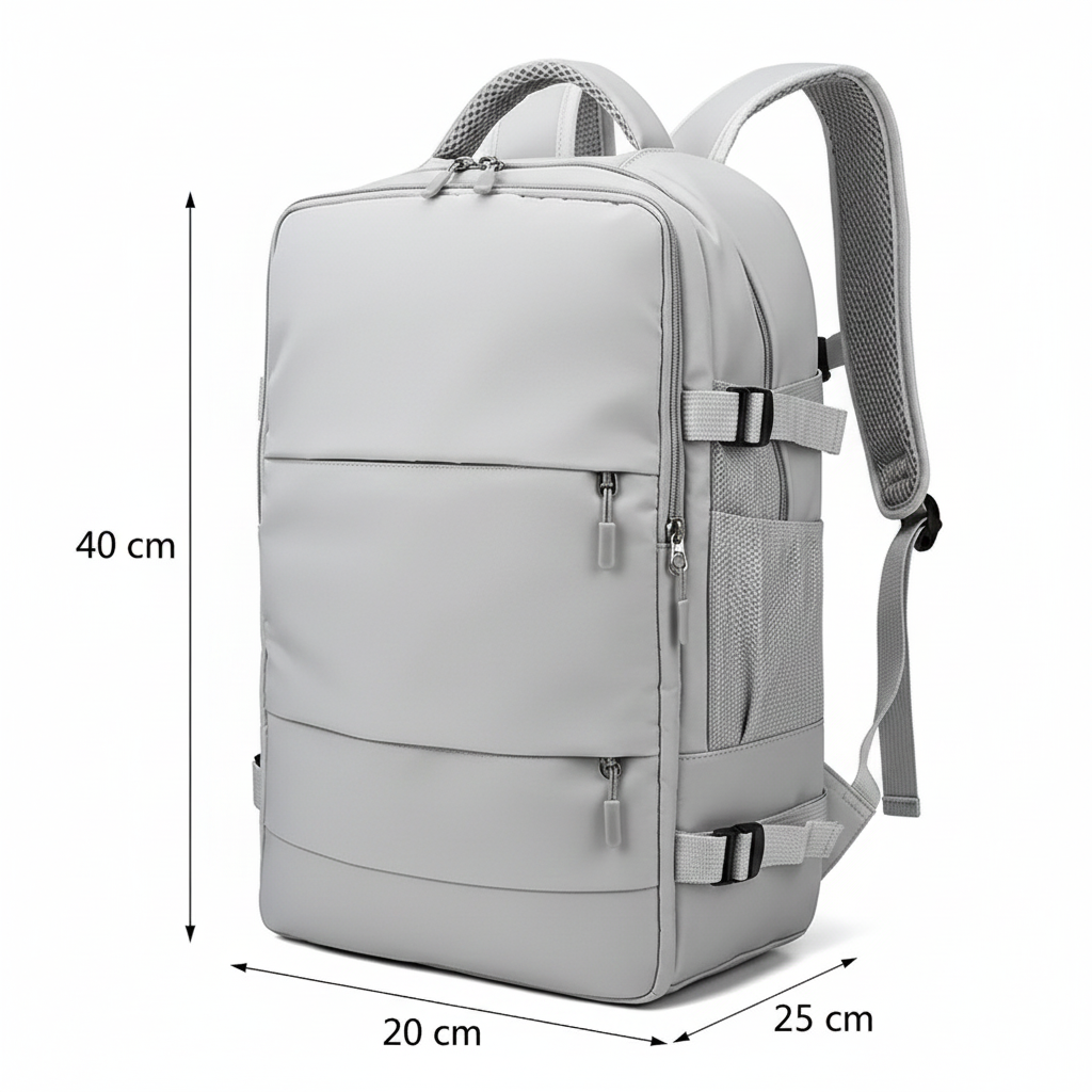 Dimensions : 40 cm x 20 cm x 25 cm — Spécialement optimisé pour la cabine avion.