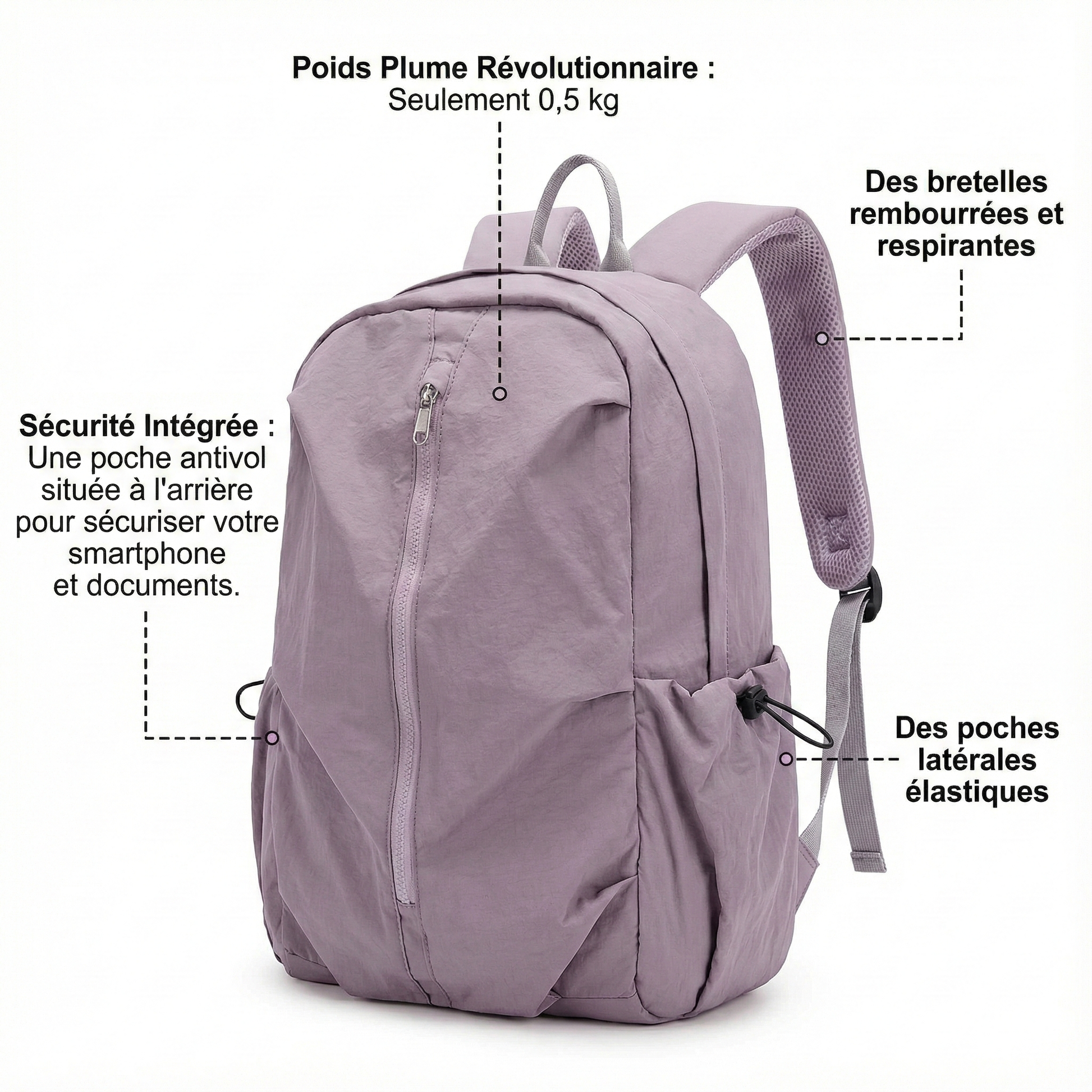 - Sécurité Intégrée : Une poche antivol située à l'arrière pour sécuriser votre smartphone et vos documents.