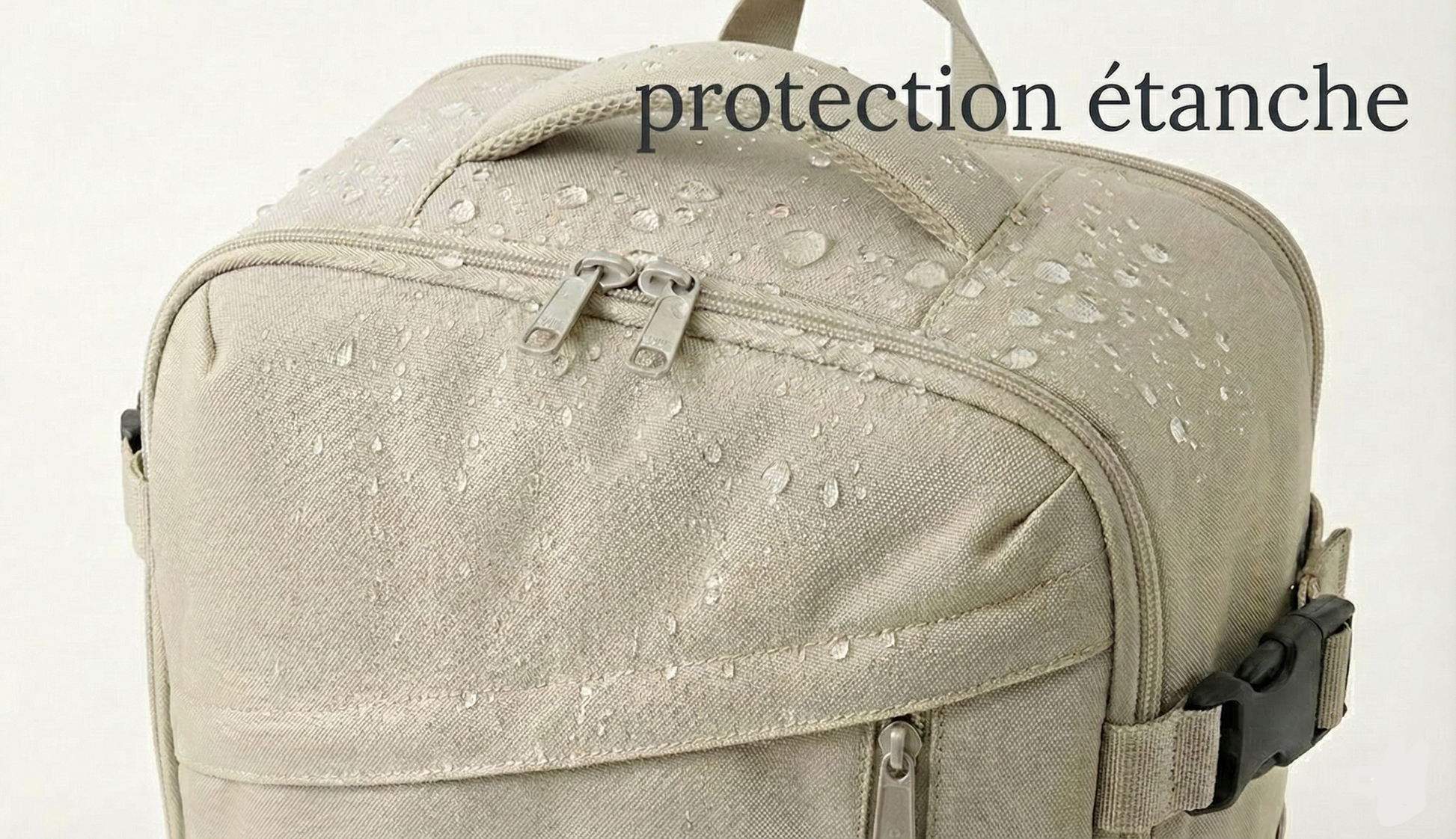 Tissu technique déperlant testé pour résister à une forte pluie. L’eau perle à la surface, sans jamais atteindre l’intérieur. C’est discret, mais redoutablement efficace.