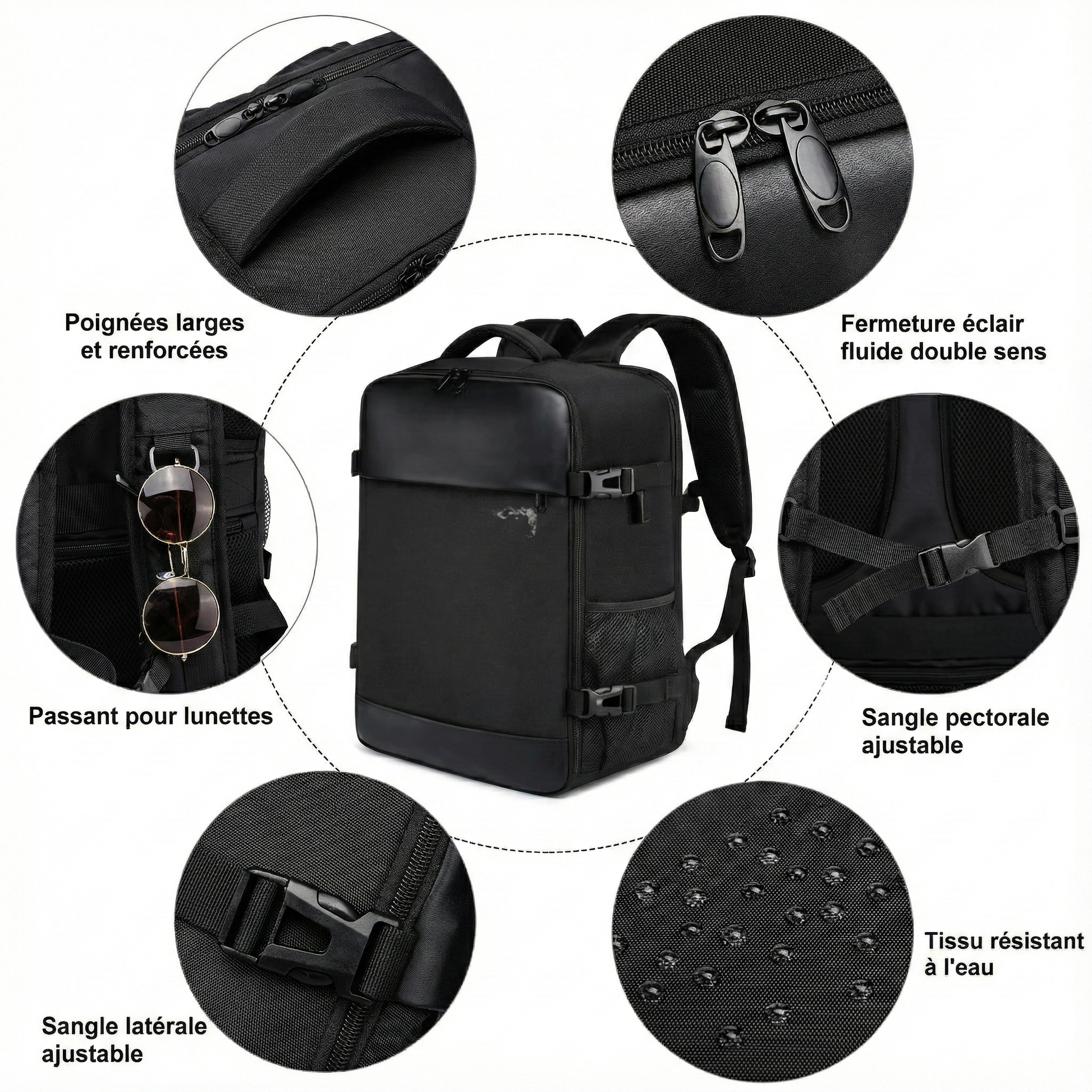 - Grande Capacité de Rangement : Offre un volume généreux de 20 à 35 litres, idéal pour organiser méthodiquement tous vos essentiels de voyage et de cours.