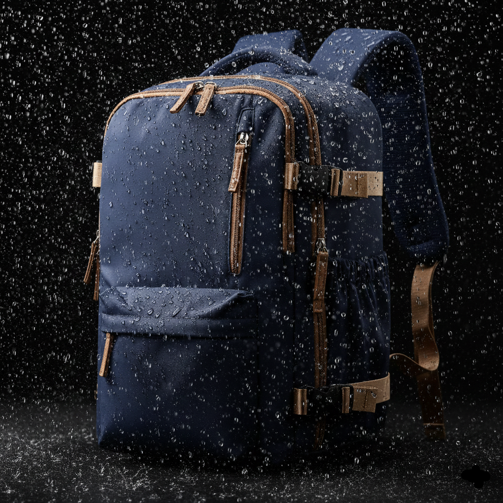 Tissu technique déperlant testé pour résister à une forte pluie. L’eau perle à la surface, sans jamais atteindre l’intérieur. C’est discret, mais redoutablement efficace.