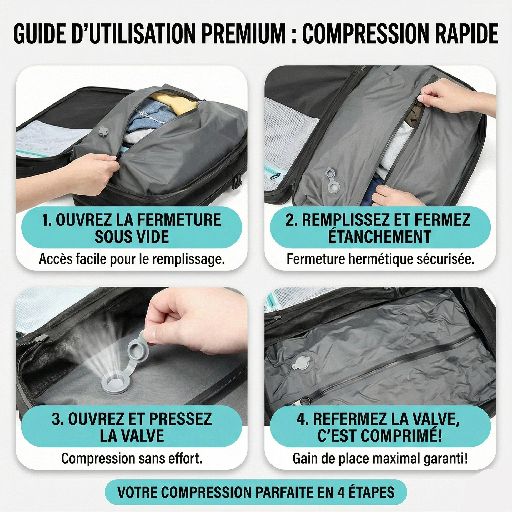Ce sac est pensé pour ceux qui détestent choisir. Grâce à son compartiment vacuum, tu emportes plus d’affaires, sans sacrifier la taille cabine ni ton confort.