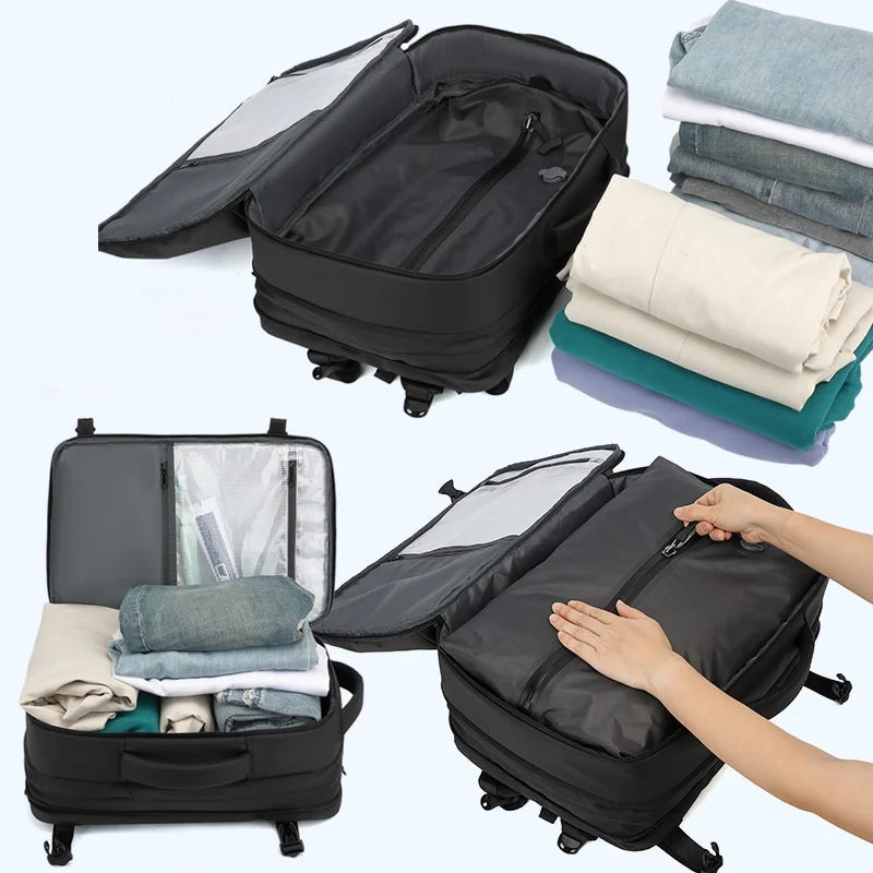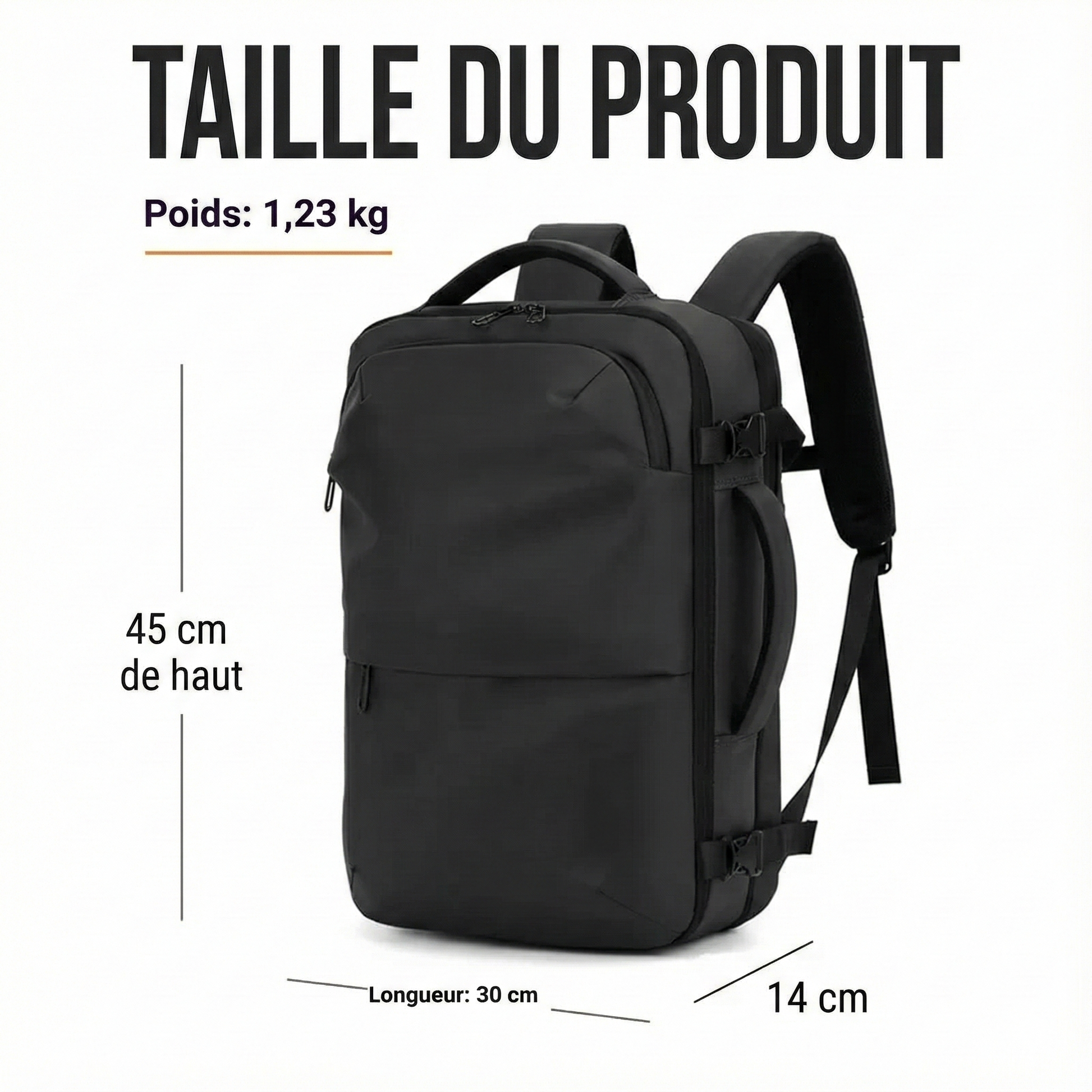 Ce sac est pensé pour ceux qui détestent choisir. Grâce à son compartiment vacuum, tu emportes plus d’affaires, sans sacrifier la taille cabine ni ton confort.